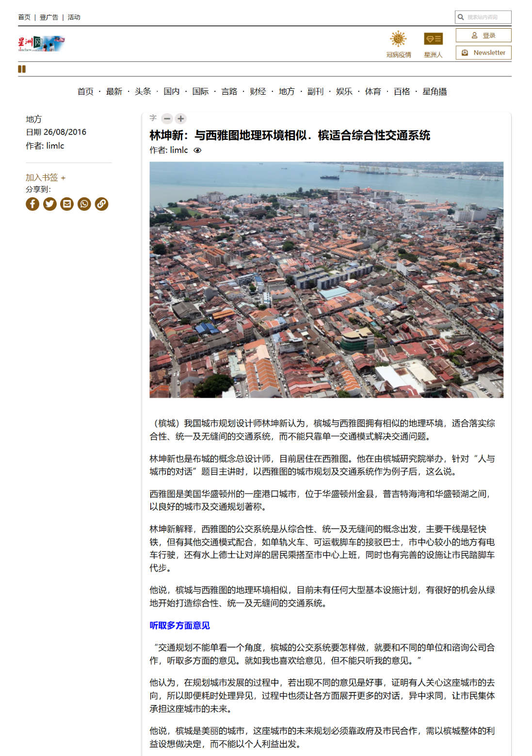 林坤新:与西雅图地理环境相似.槟适合综合性交通系统Media-Publications 林坤新:与西雅图地理环境相似.槟适合综合性交通系统https://www.sinchew.com.my/20160826/林坤新:与西雅图地理环境相似.槟适合综合性交通系统 26.8.2016