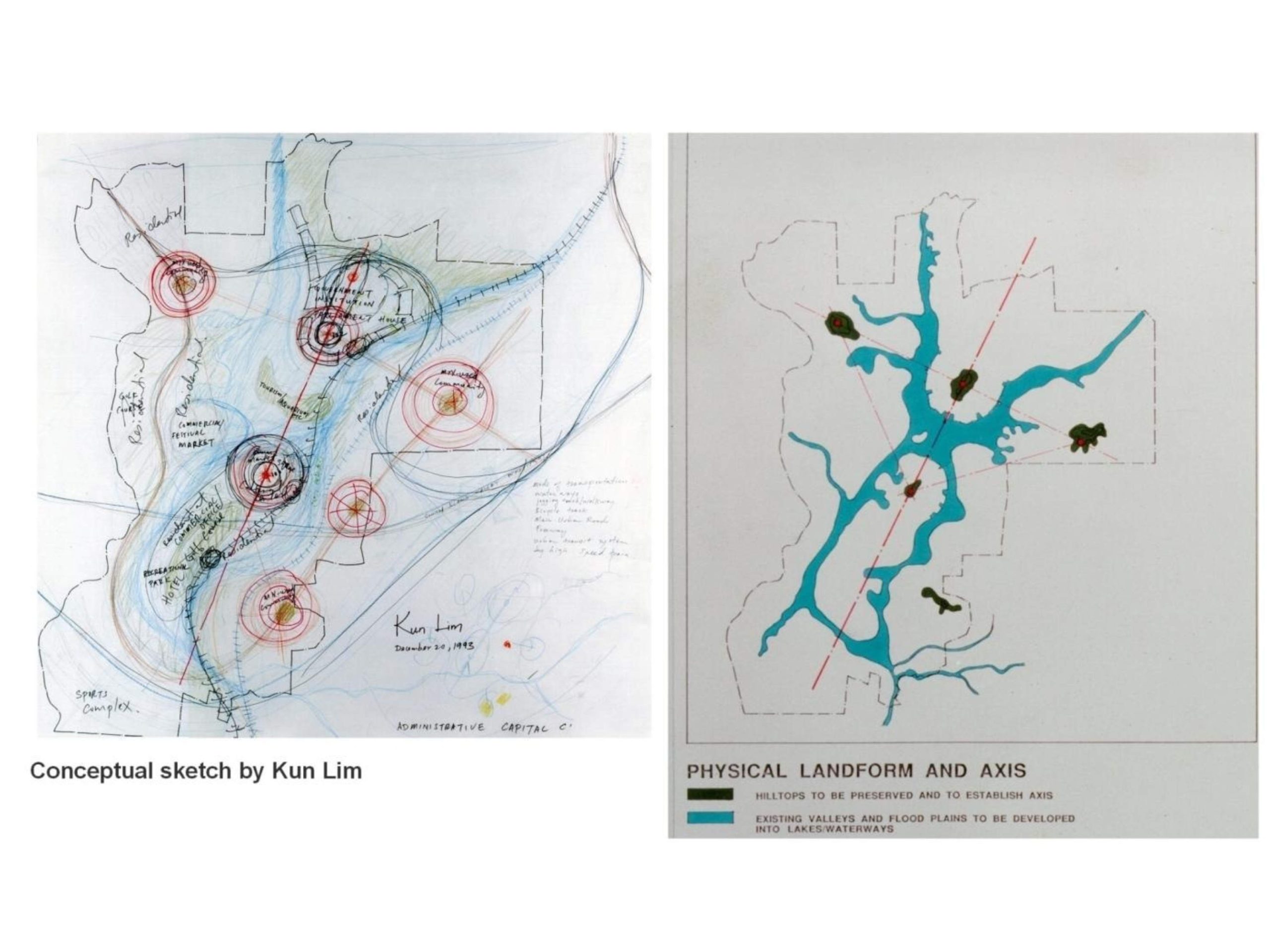 Kun Lim’s Concept Master Plan while working for BEP Architects in Kuala Lumpur, won an invited design competition for Putrajaya – the new Administrative Capital of Malaysia, in early 1994.