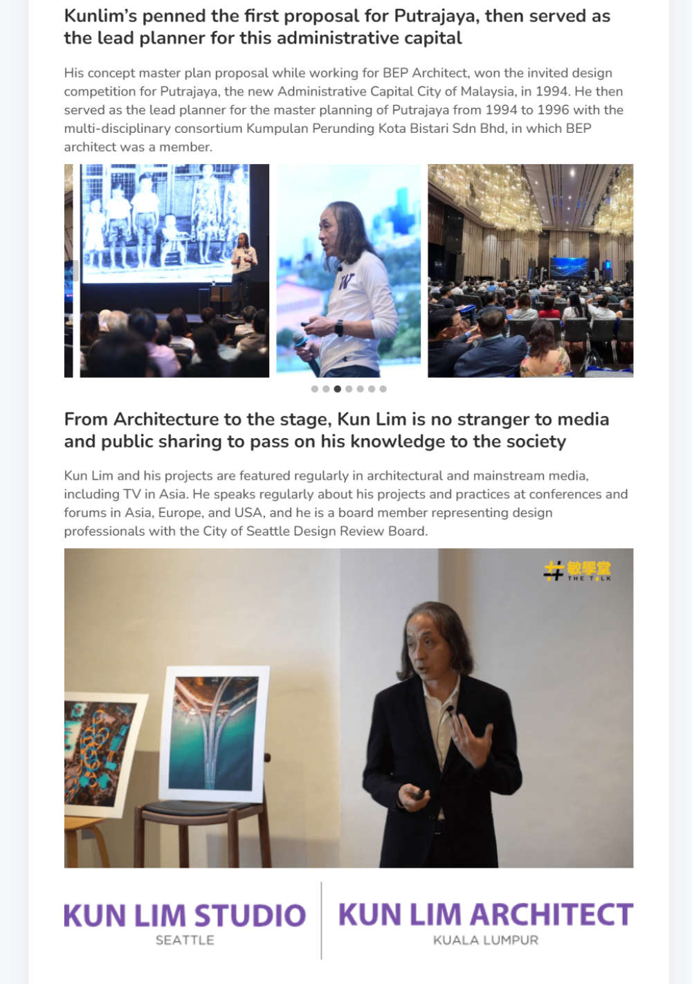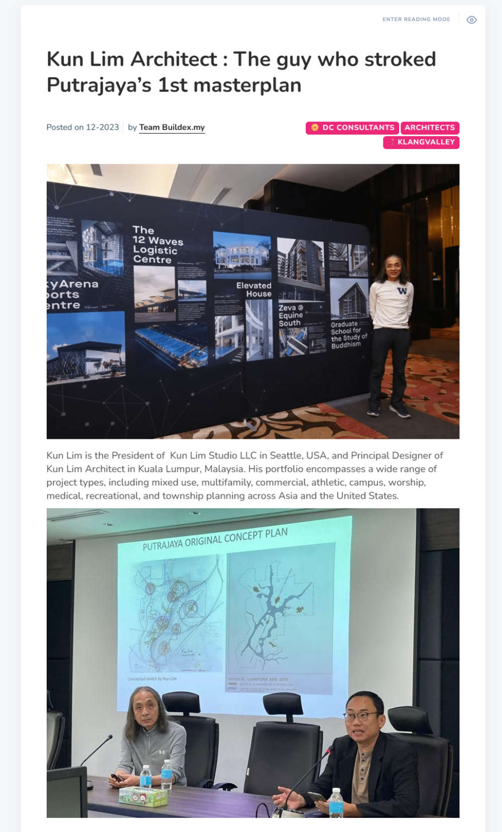 Kun Lim Architect : The guy who stroked Putrajaya’s 1st masterplanMedia-Publications Kun Lim Architect : The guy who stroked Putrajaya’s 1st masterplan Buildex.my https://buildex.my/kunlim/ Dec 2023