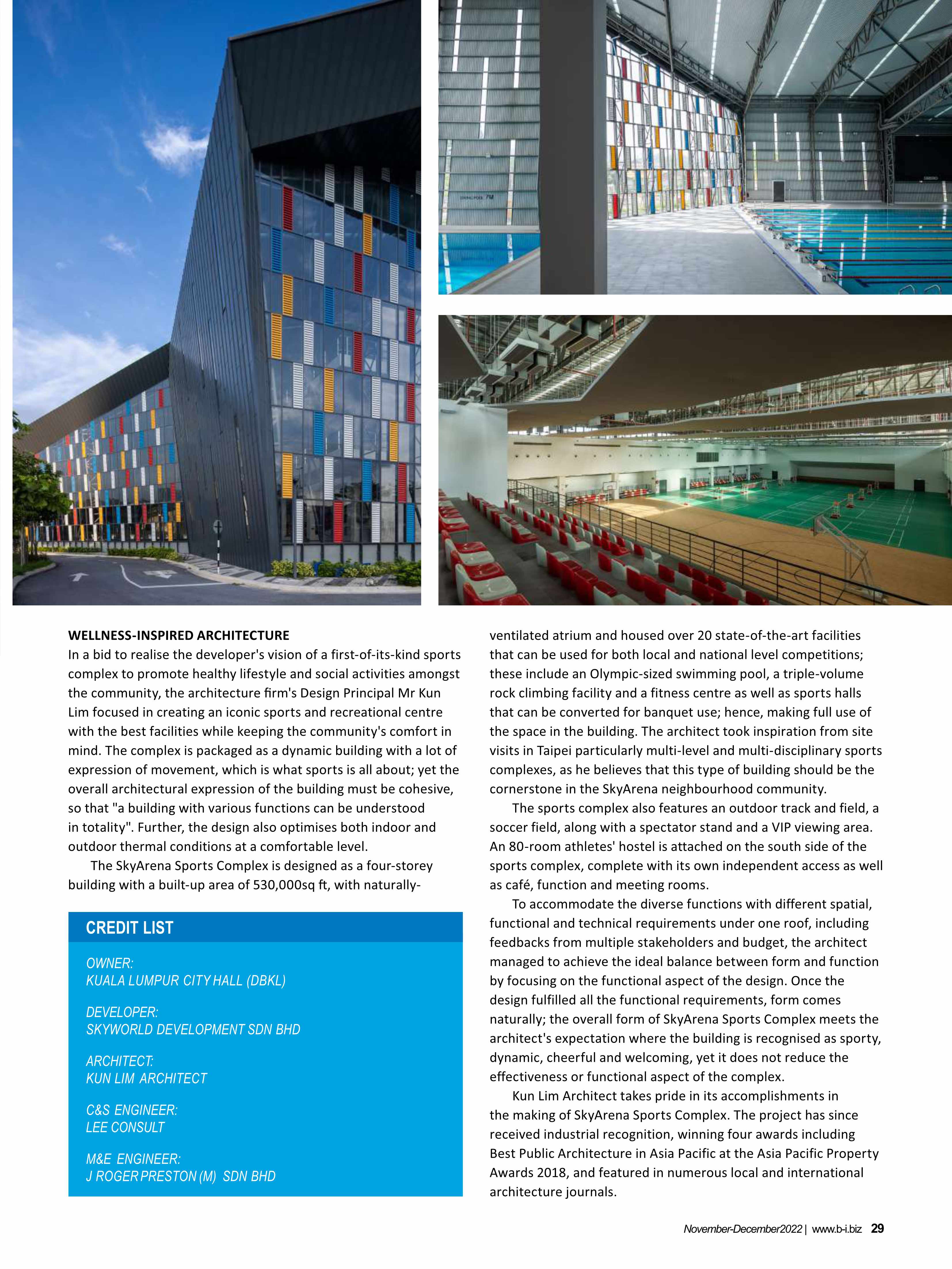 SkyArena Sports Complex Building & Investment Nov-Dec 2022Media-Publications SkyArena Sports Complex@Setapak, KLBuilding & InvestmentNov-Dec 2022