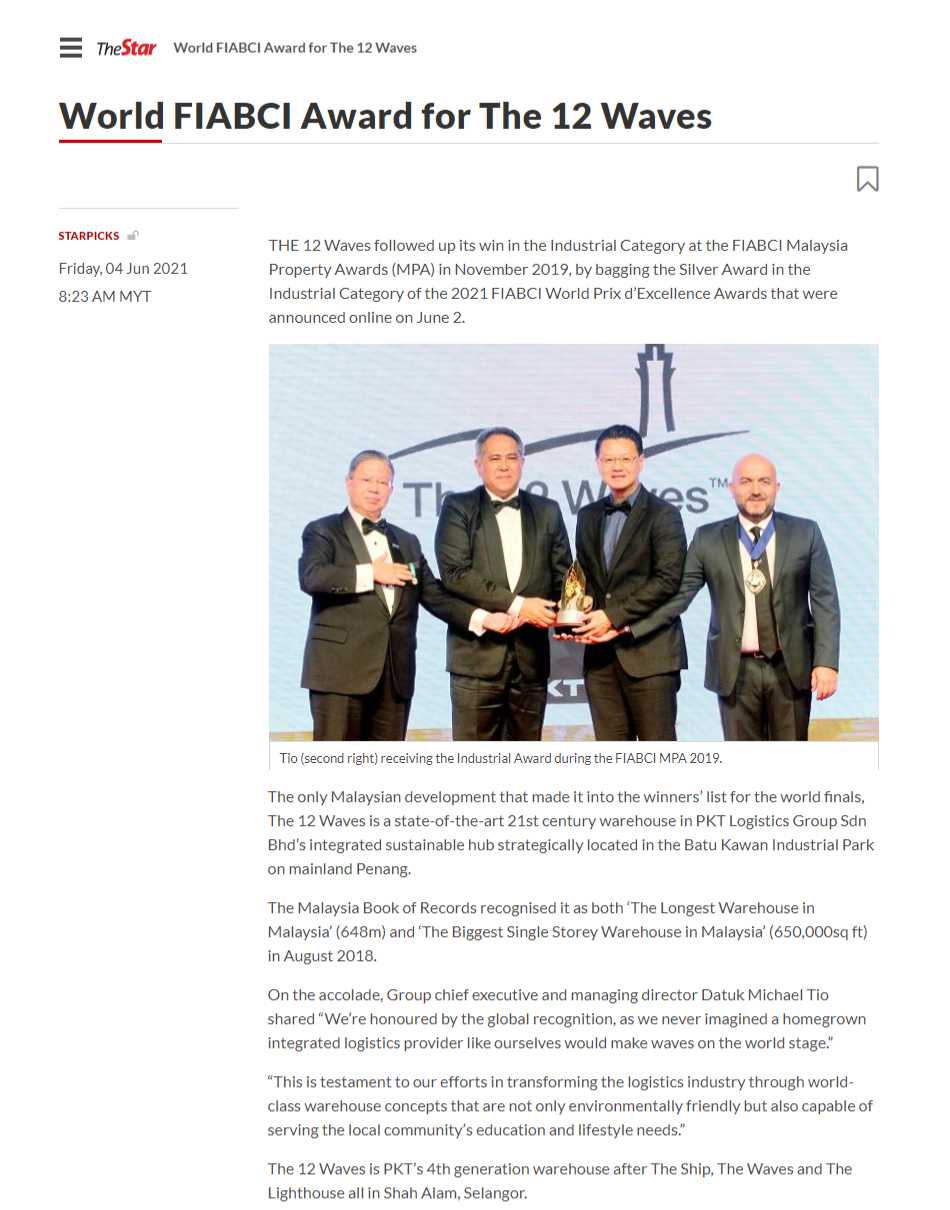 World FIABCI Award for the 12 WavesThe StarMedia-Publications World FIABCI Award for the 12Waves The Star, 4 June 2021